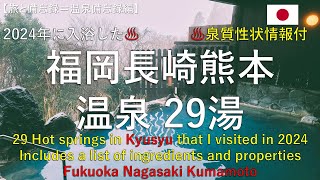 2024年、九州の福岡・長崎・熊本県でで20湯に入浴してきました。 動画・画像と共に、温泉の泉質・性状等を整理し備忘録動画 …
